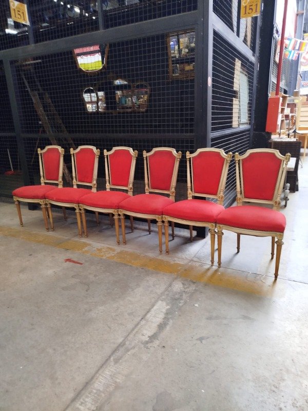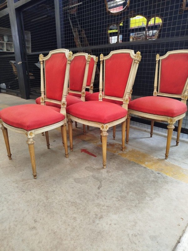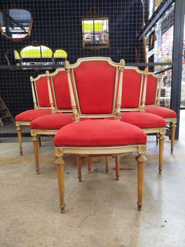 6 sillas francés Luis XVI dorado a la hoja